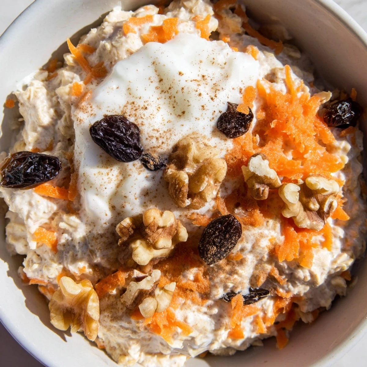 - Greek yogurt: Adds protein and tanginess that balances the sweet carrots and raisins perfectly