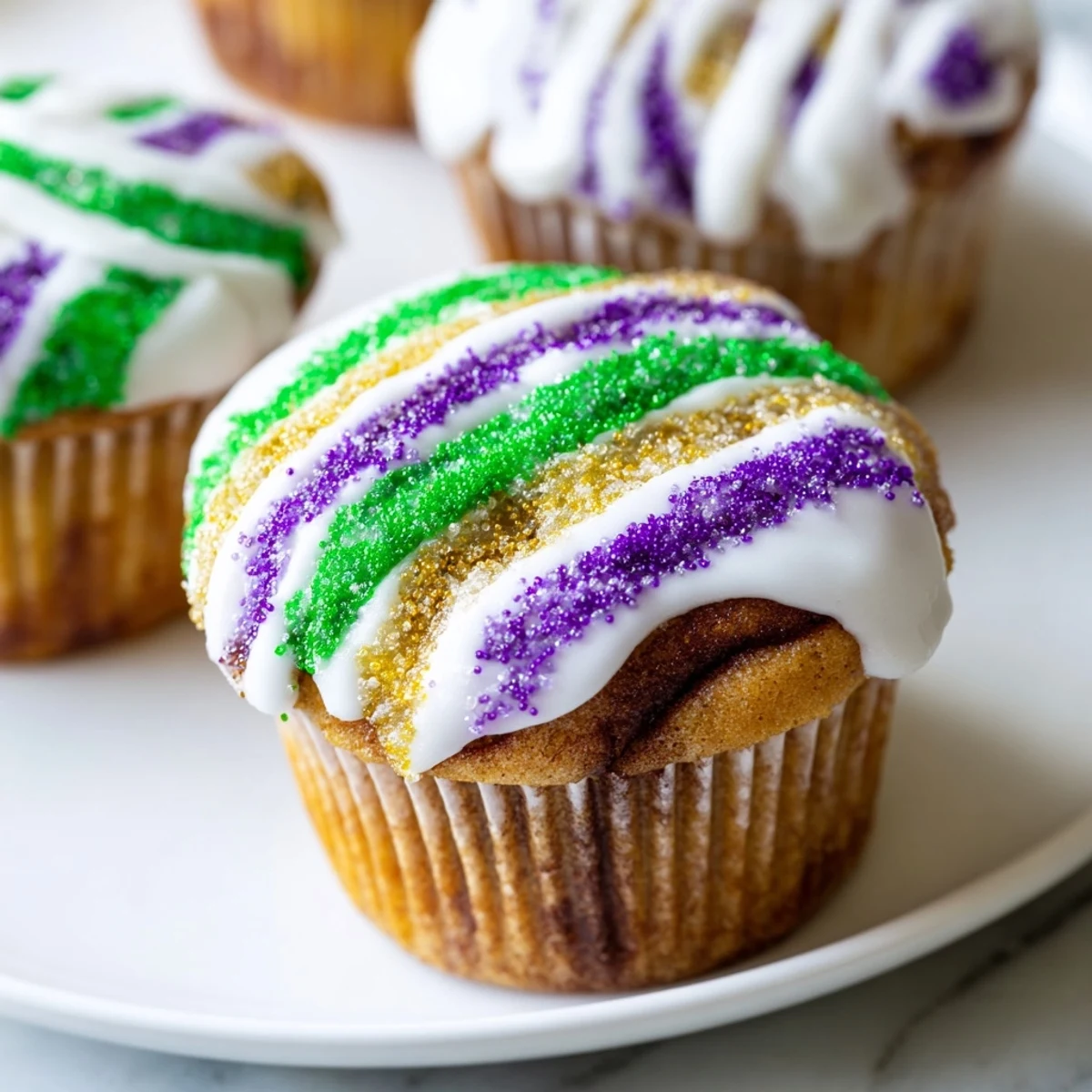These cupcakes capture the festive spirit of Mardi Gras with a cinnamon-swirled vanilla base. The batter is gently folded with warm spices and baked to fluffy perfection. Topped with smooth vanilla icing and decorated in signature Mardi Gras colors—purple, green, and gold—each bite offers a delightful balance of sweetness and spice. Ideal for celebrations, the cupcakes are easy to prepare and bring a colorful touch to any dessert table.