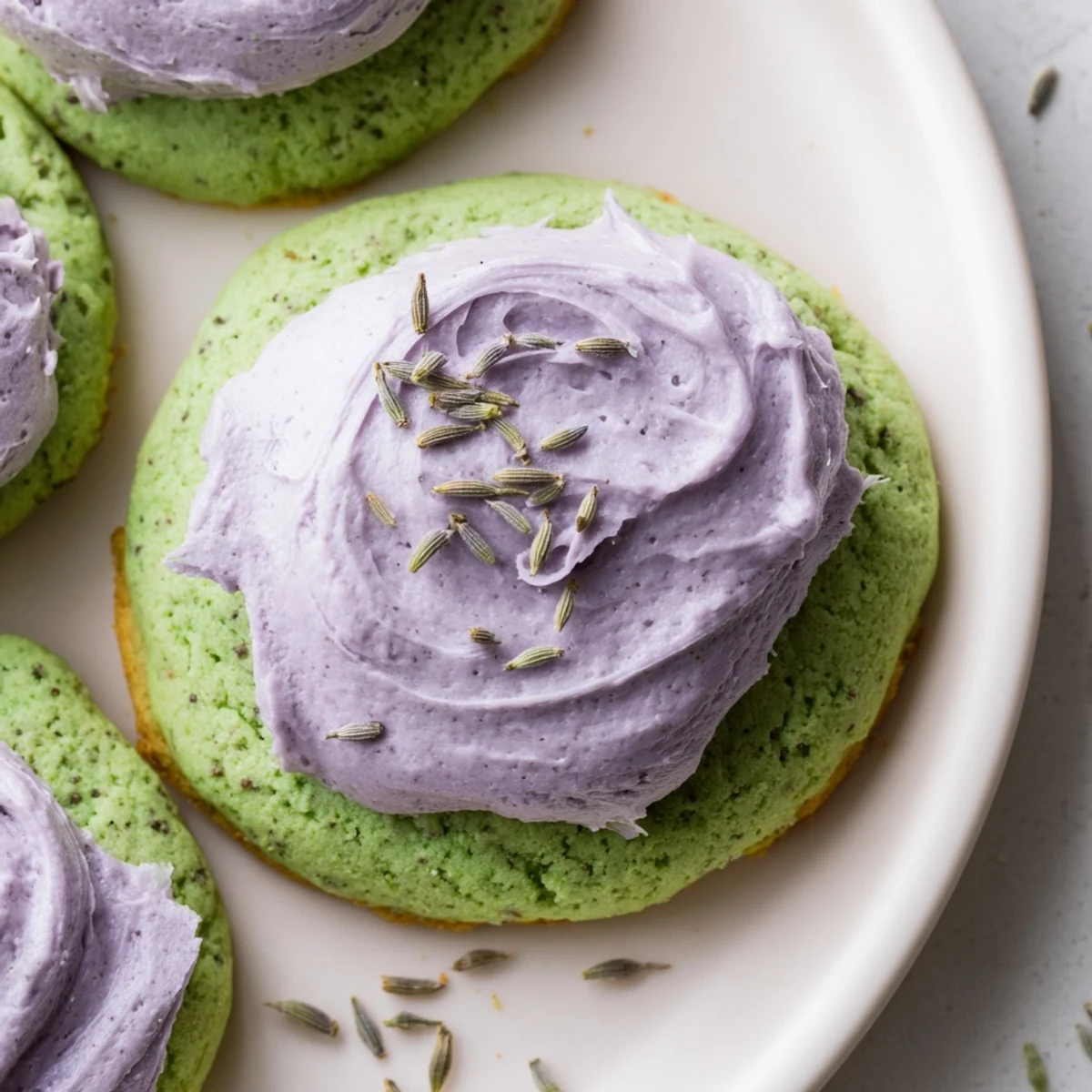 These delicate matcha sugar cookies combine the earthy sweetness of Japanese green tea with the aromatic floral notes of French lavender buttercream. The soft, chewy cookies feature a vibrant green hue from premium matcha powder, while the light purple frosting adds visual elegance and fragrant complexity. Perfect alongside afternoon tea or champagne, these fusion treats balance bitter and sweet flavors with a tender crumb. The ground lavender buds infuse the buttercream with subtle floral essence without overwhelming the palate.