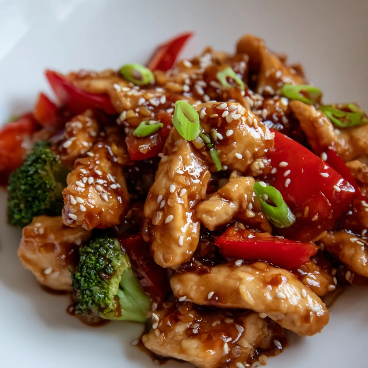 This vibrant dish combines thinly sliced chicken breast with colorful vegetables like bell peppers, broccoli, and snap peas, all coated in a glossy homemade sesame-soy sauce. The balance of savory soy, nutty sesame oil, and touch of honey creates depth that appeals to everyone at the table.